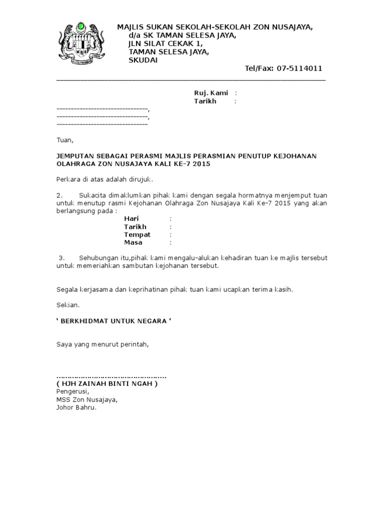 Surat Jemputan Yb Ke Sukan Tahunan Pdf